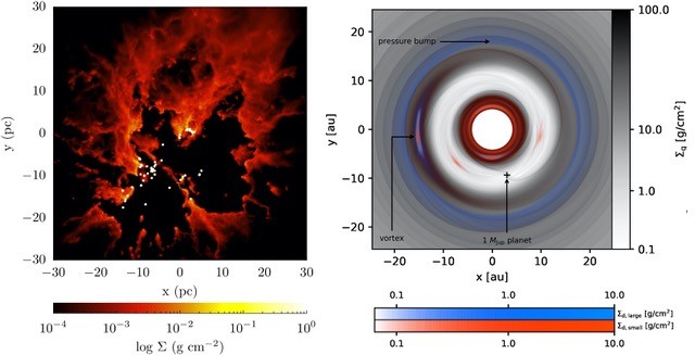 We explore topics from the formation of planets and single stars to larger scale star and cluster formation by means of numerical and theoretical investigations. We use state-of-the-art numerical tools and develop new algorithms in-house in order to tackle problems of hydrodynamics, planet & disk interaction, planetesimal formation, dust & gas disk evolution, radiation transport in complex evolving hydrodynamical systems, and others.